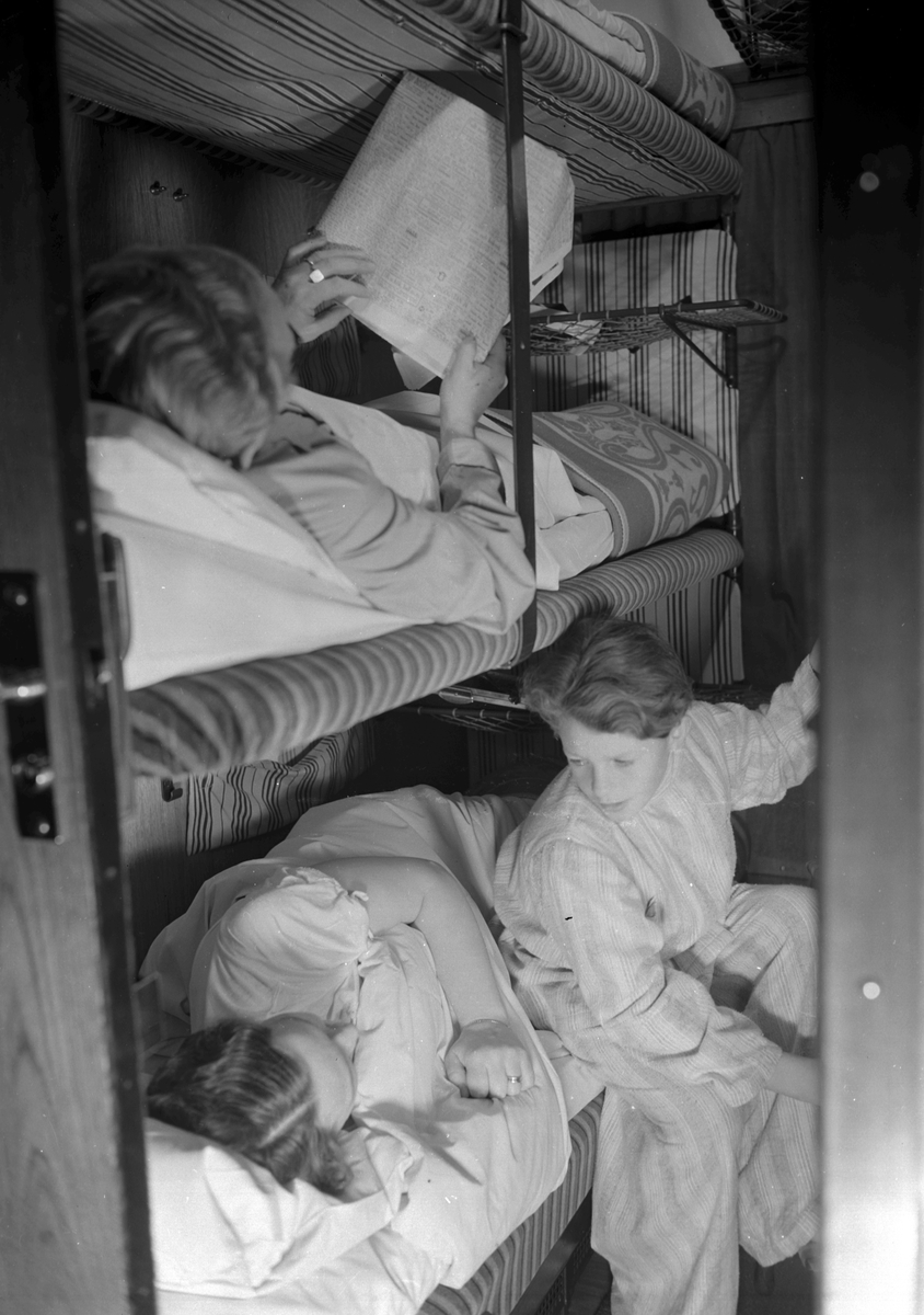 ABo2c, 3:e klass sovvagn. Mannen ligger och läser tidningen.
