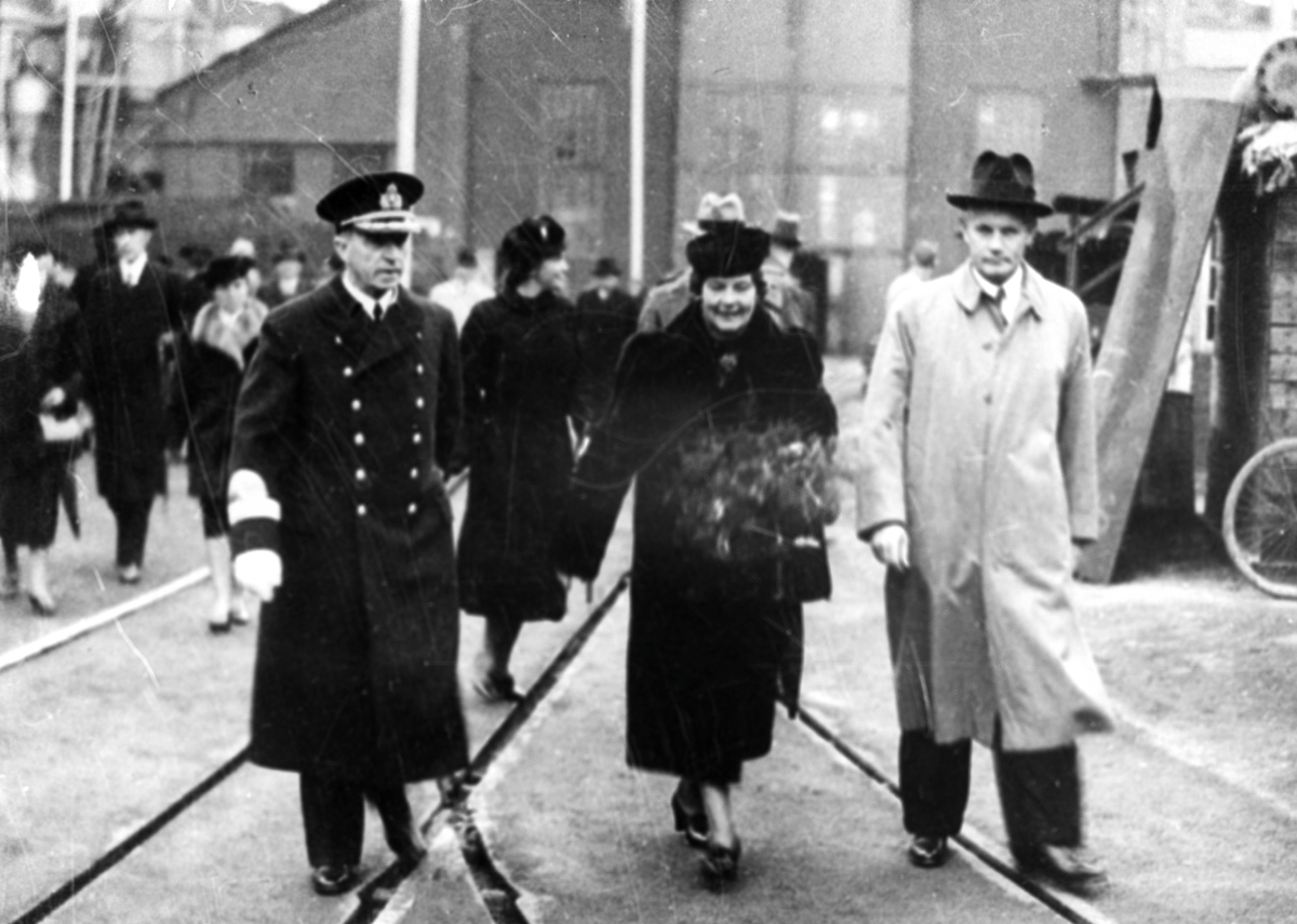 Titel: Aktuellt. Filmklipp. Från sjösättning Malmöhus. På väg till middagen
