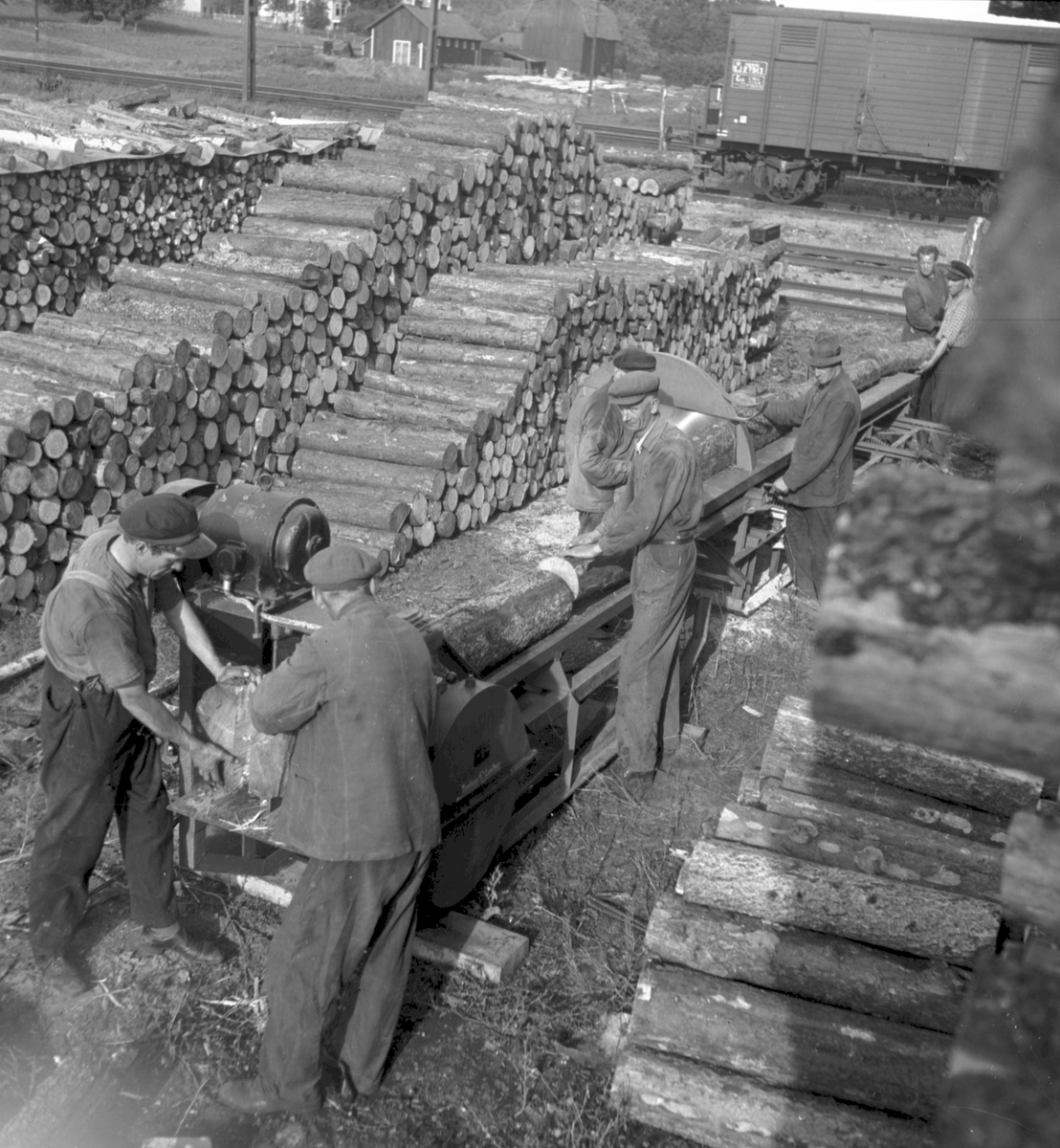 Vedupplag. Vedkapning för ånglok. Gävle lokstation, Sörby