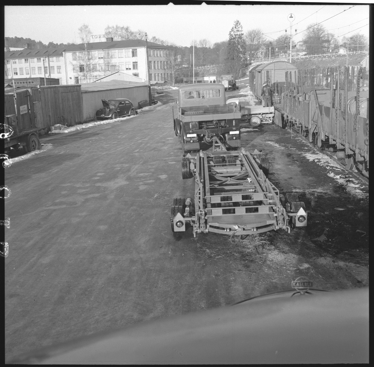 Dragfordon av märket Kaelble med vagnbjörn släp.