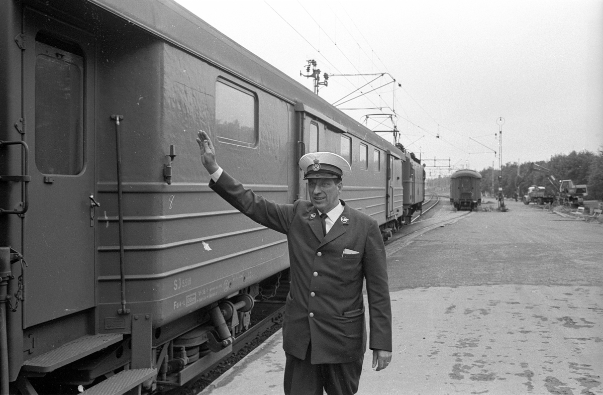 Titel: Nordpilen. Tågbefälhavare Folke Holmgren ger klart för avgång.