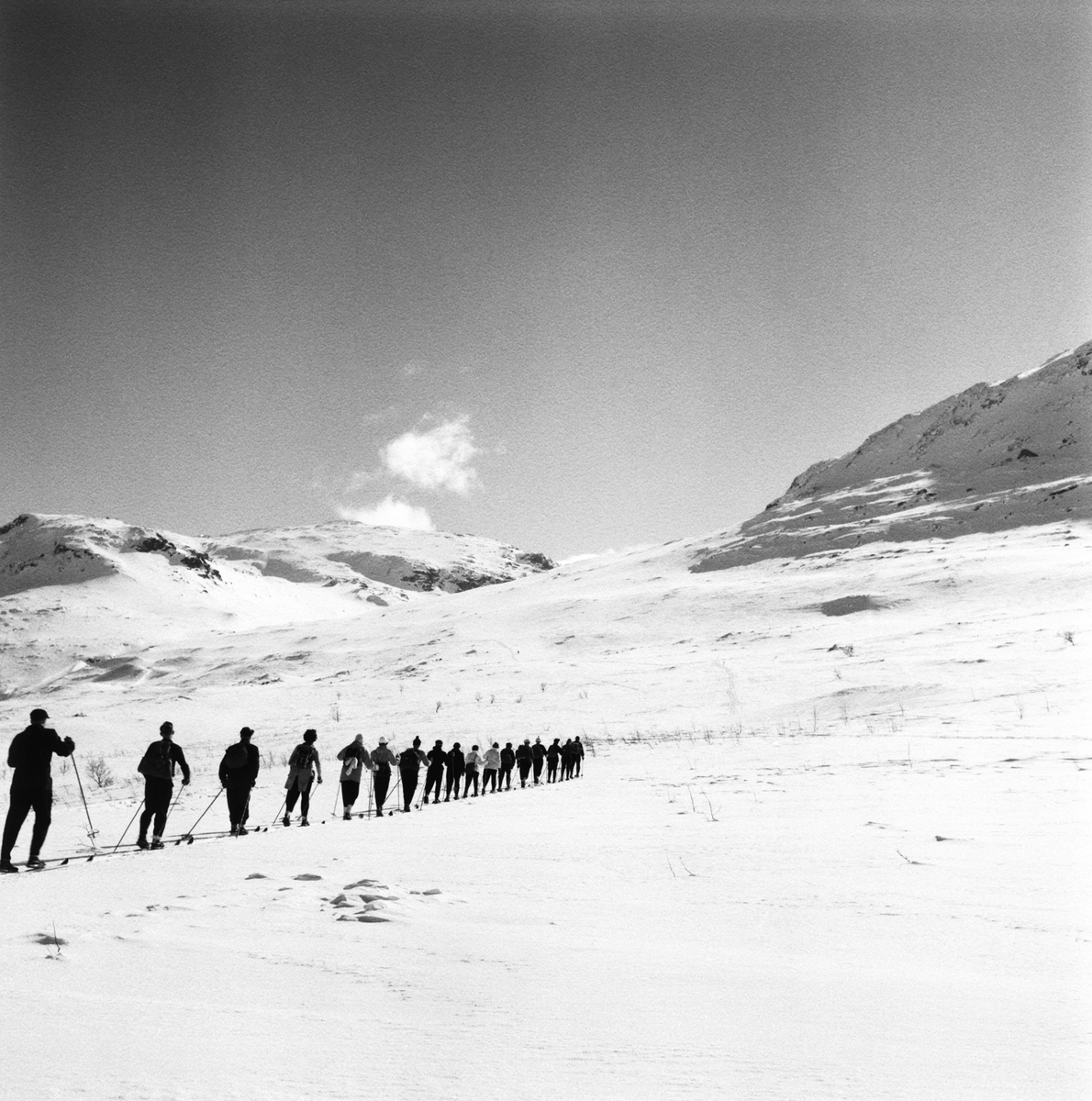 Skidåkare, tåghems-resenärer vid Låktatjåkko och Riksgränsen.
