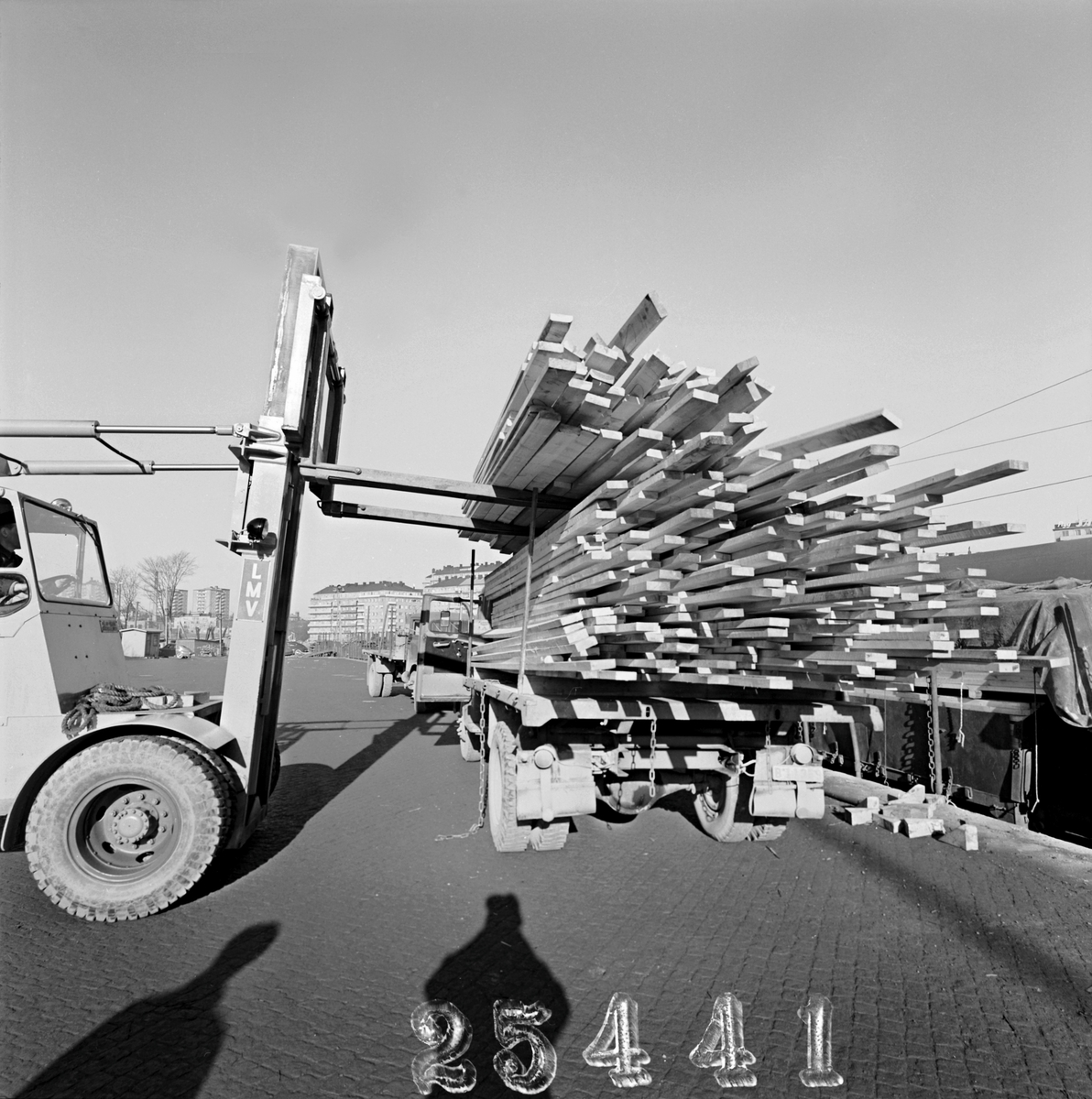 Titel: Virke- och kabellastning med truck Liljeholmens bangård