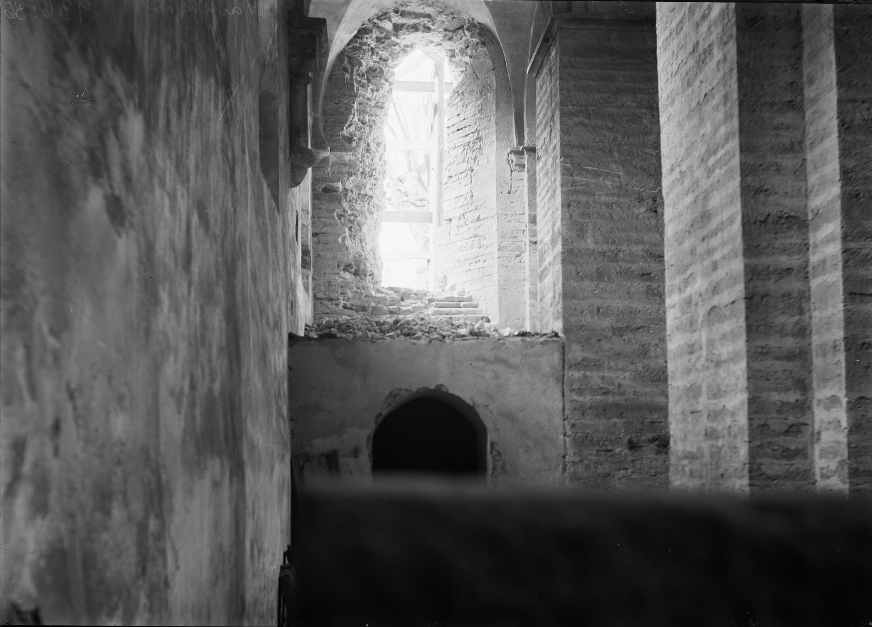 Södra sidoskeppets nyfunna västra fönster upptaget, från öster.