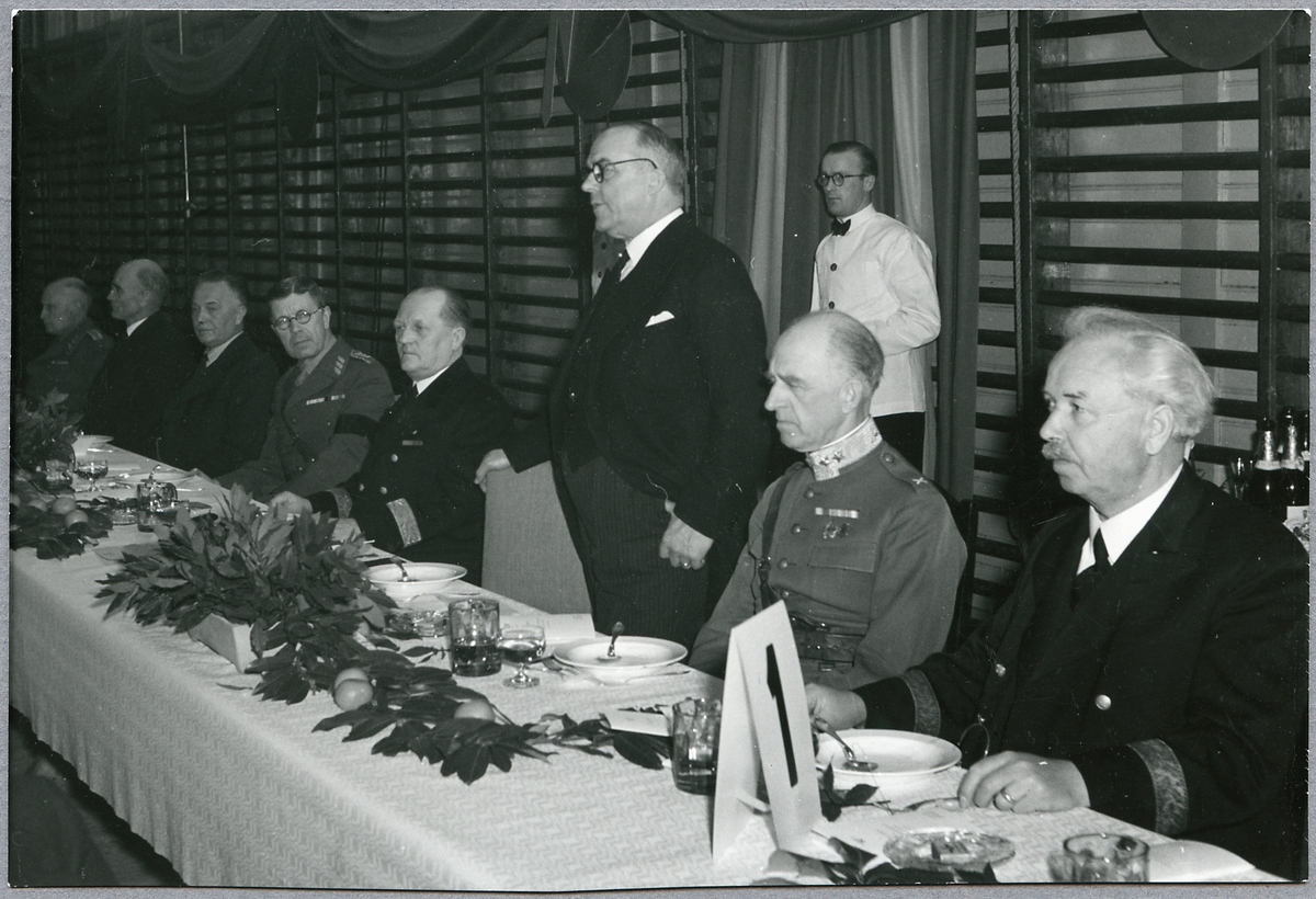 Invigning av elektrifieringen linjen Långsele - Boden. Från middagen i Norrbottens regementes gymnastiksal. Gd Dahlbeck invigningstalar.