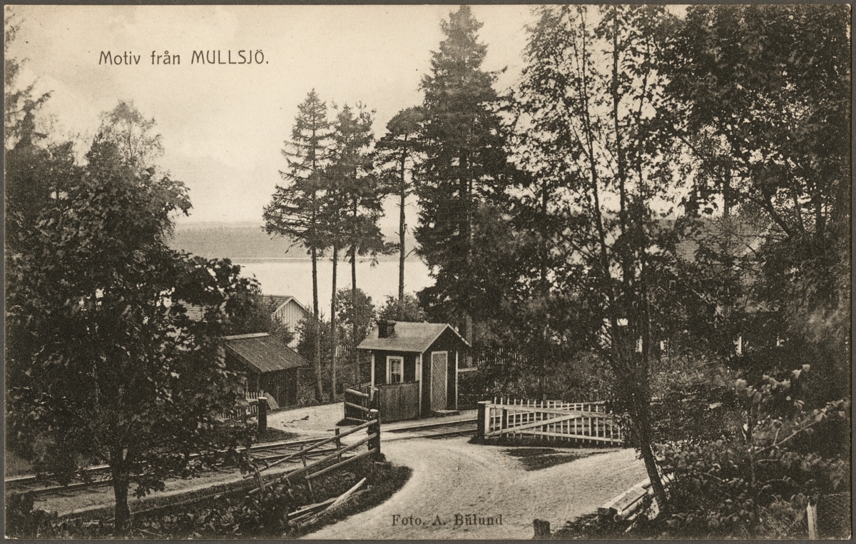 Plankorsning med grindvakt i närheten av Mullsjö station på linjen mellan Falköping och Jönköping.