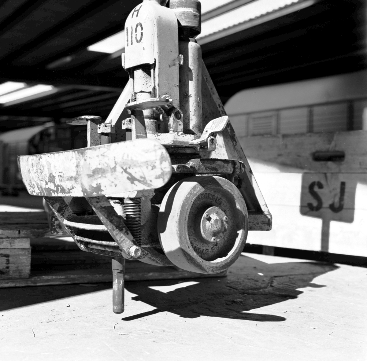 Omlastningsmagasin, detalj av pallyftare, kedjetransportör