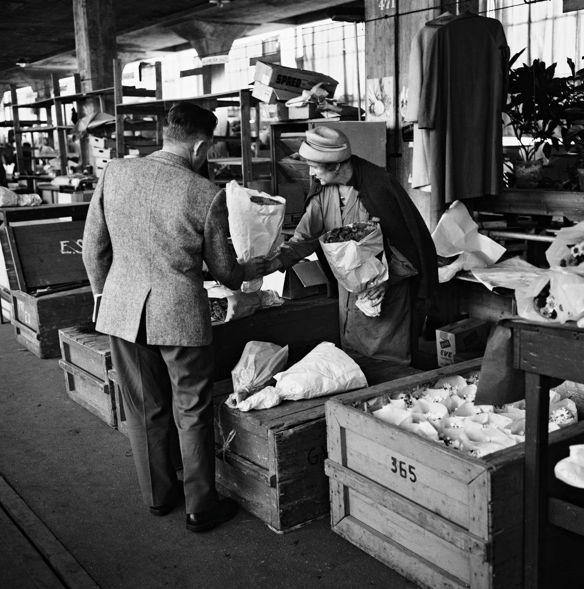 Klarahallen, salutorg. Försäljning av frukt, grönt och blommor