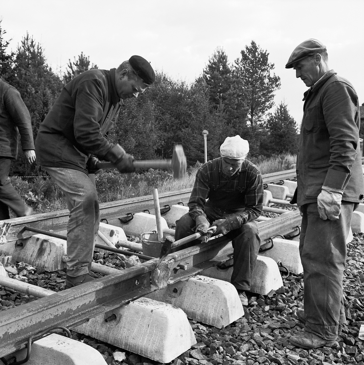 Titel: Spårarbete, Flisby-Solberga. Svetsar skarv