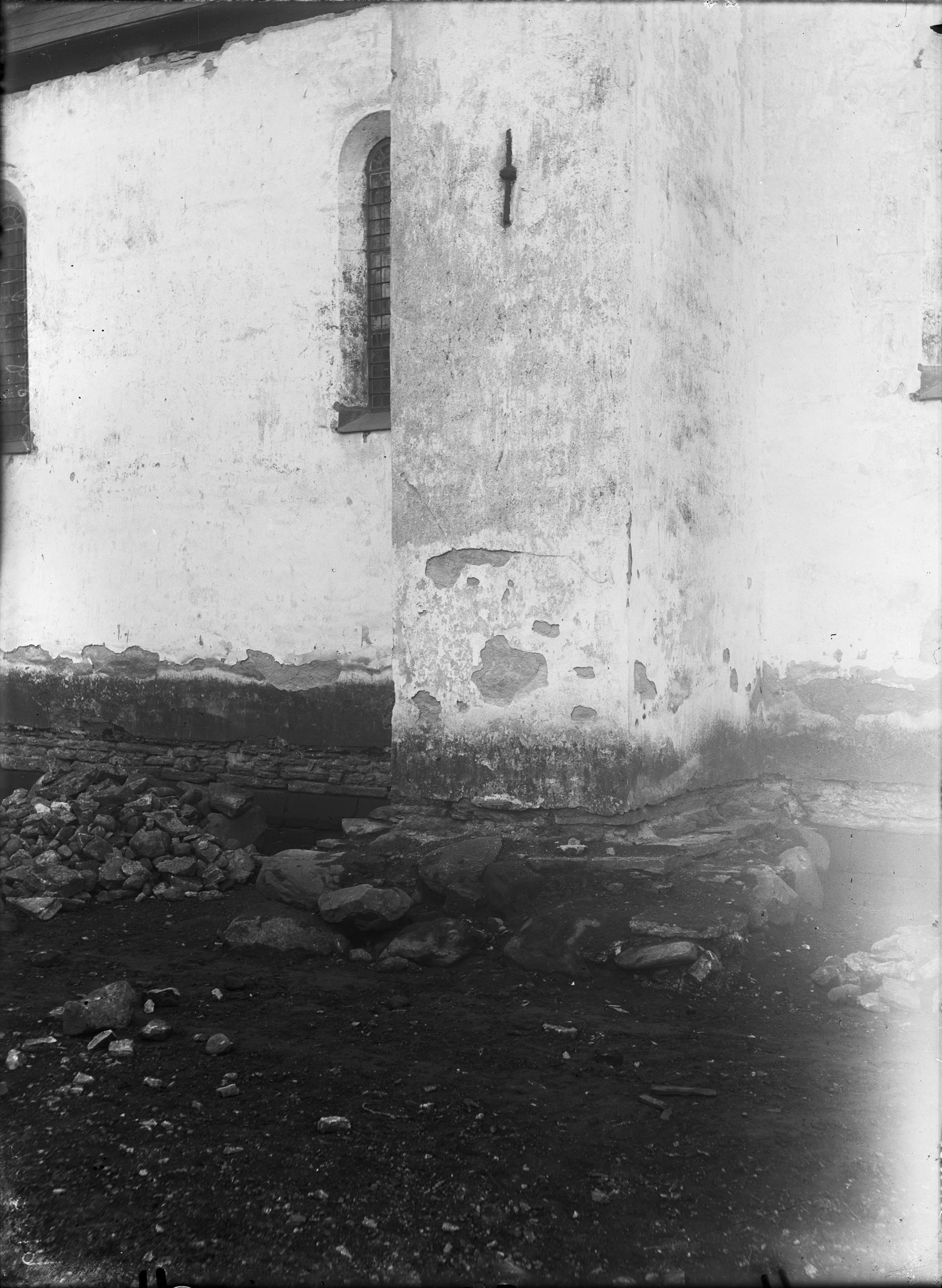 Norra fasaden, tredje strävpelaren från väster, före grundförstärkning, från nordväst.