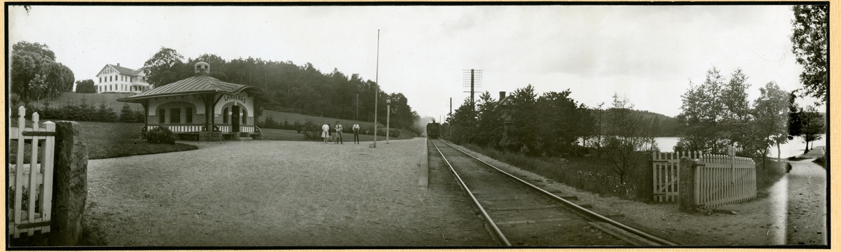 Hållplats vid Landvettersjön, anlagd 1906. Envånings stationspaviljong, väntsalsbyggnad, ritad av arkitekt Folcke.