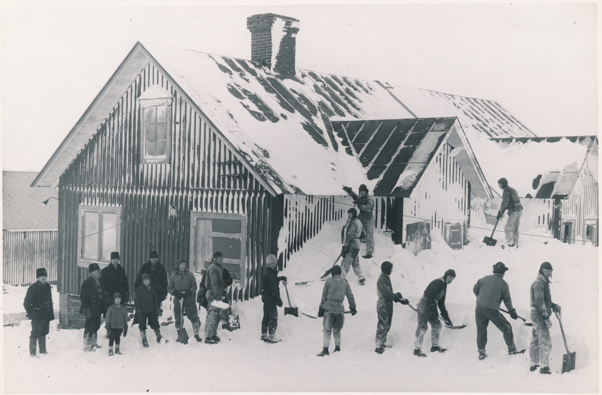 Snöskottning av Fjällstugan efter snöskredet vid Riksgränsen.