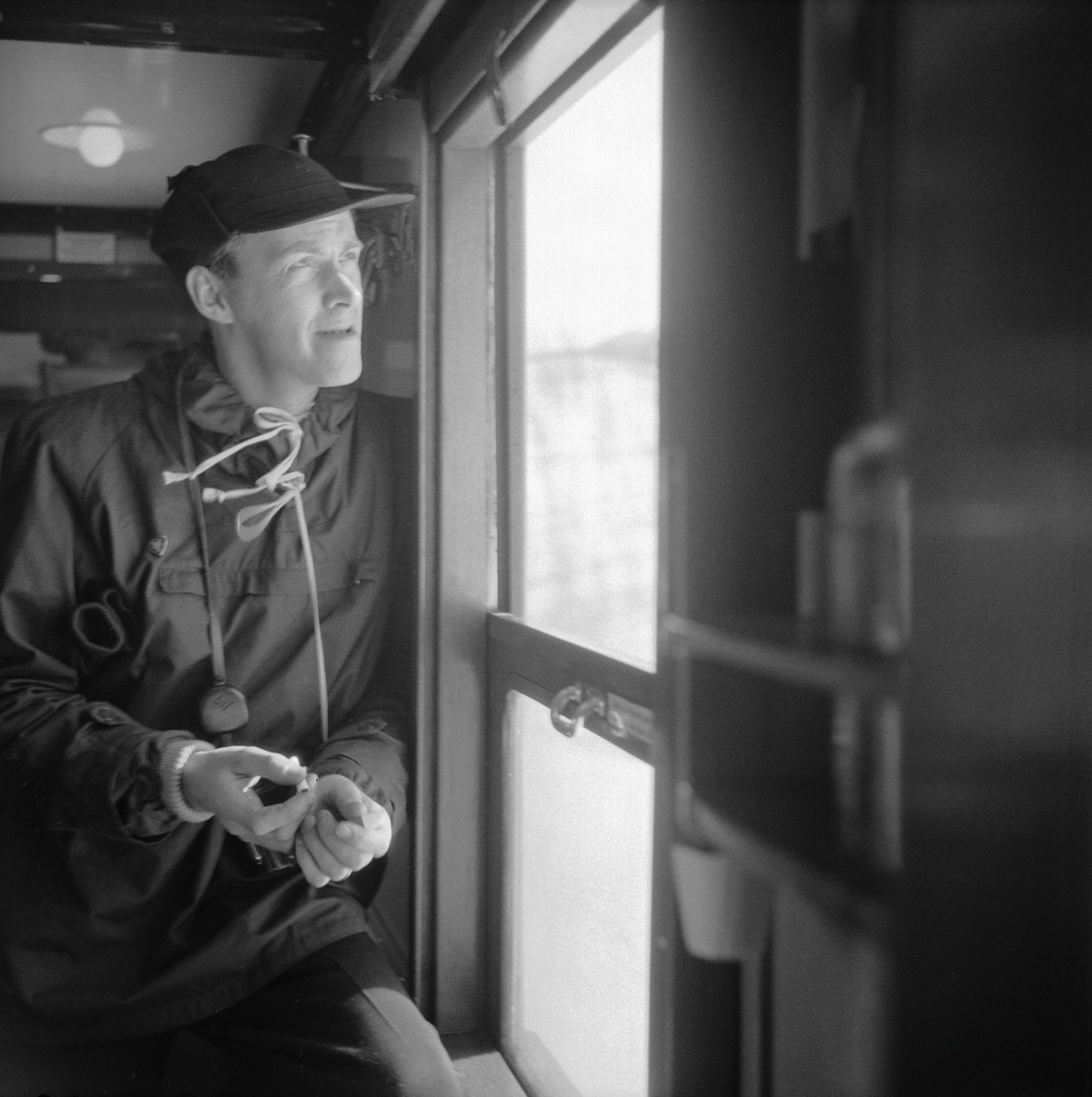 Statens Järnvägar, SJ Tåghem, resenärer i fönster.
