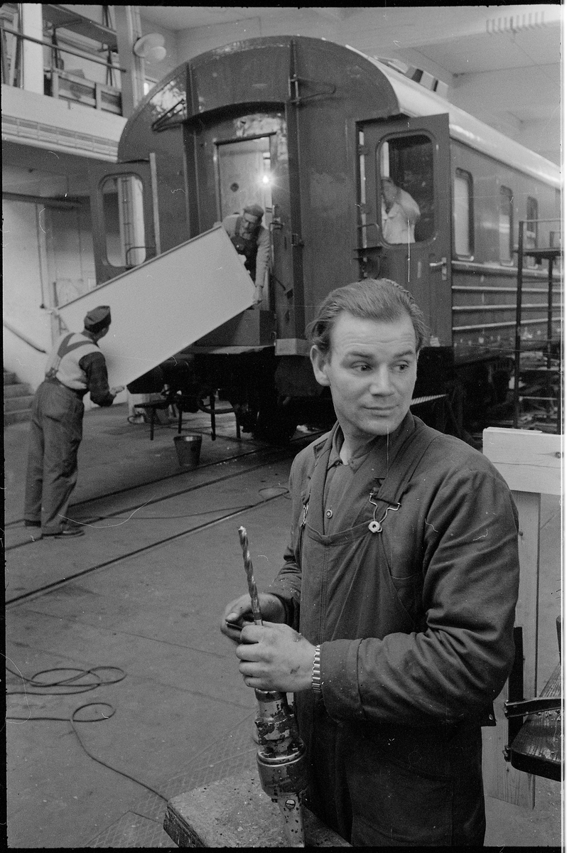Titel: Statens Järnvägar, SJ personvagnar monteras.