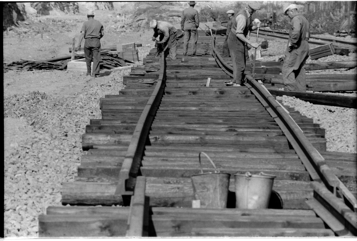 Dubbelspårsarbete, rälsutläggning.