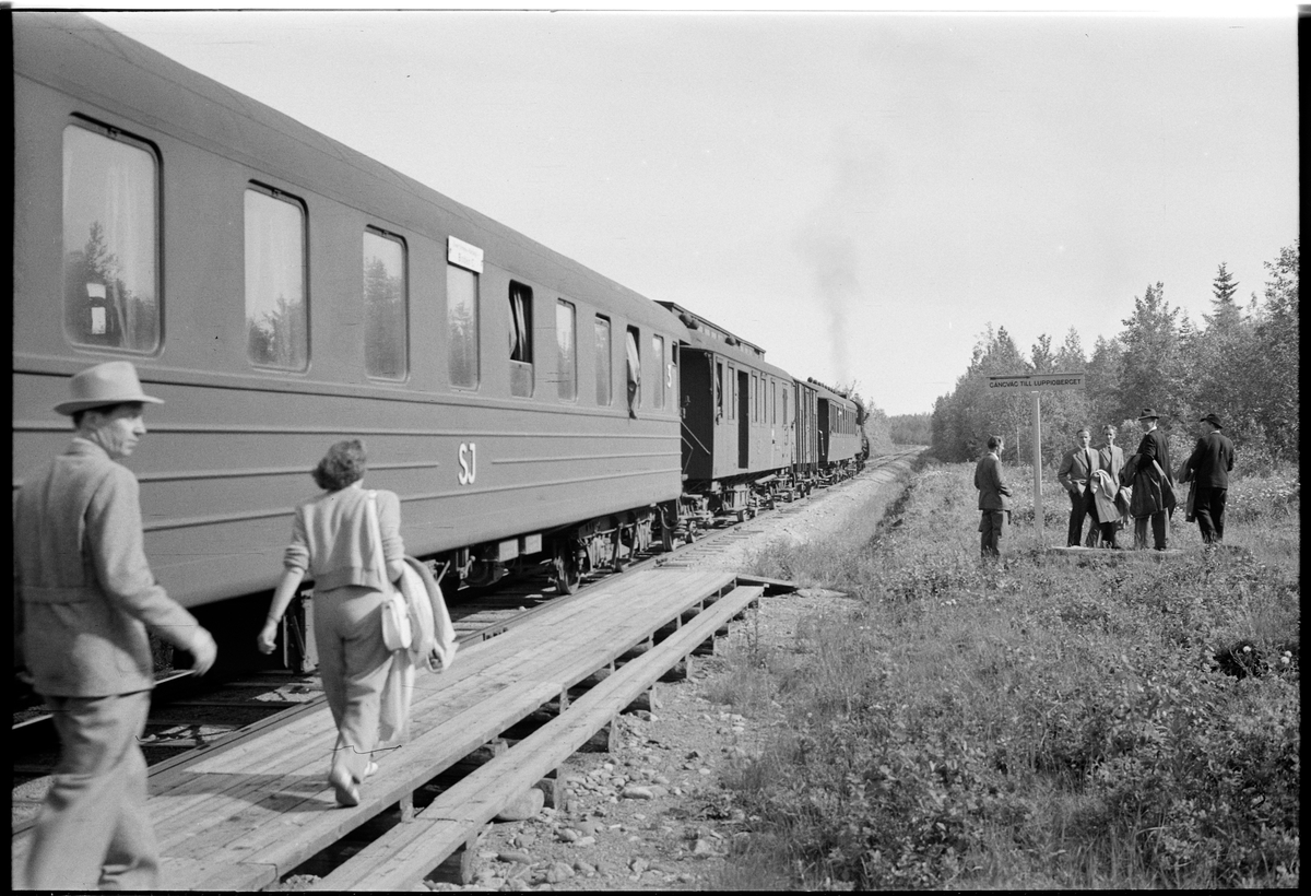 Resande vid starten för gångvägen upp till Luppioberget, på linjen mellan Övre Niemis och Alkullen.
