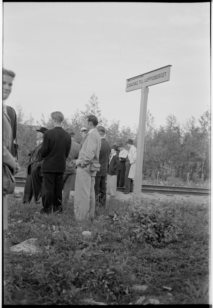 Folksamling vid järnvägsspår på linjen mellan Luppio och Övertorneå.