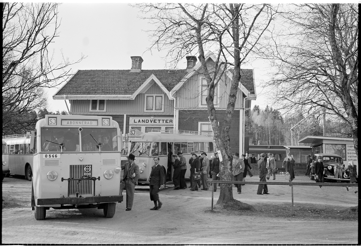 Statens Järnvägar, SJ Buss väntar på passagerare utanför stationen i Landvetter.