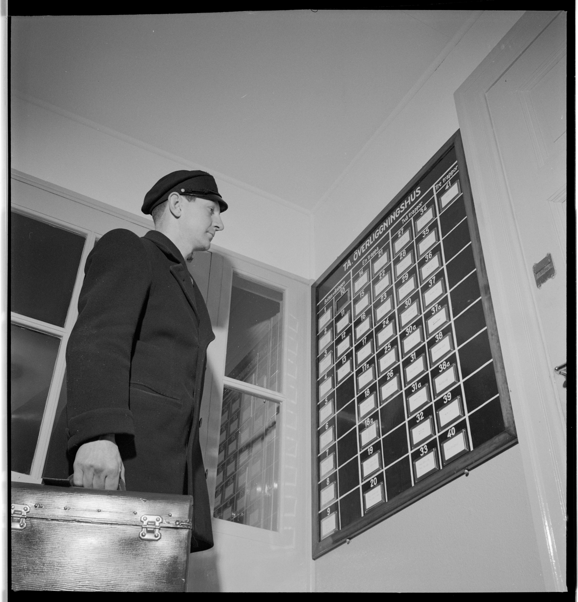 Personal framför informationstavla.