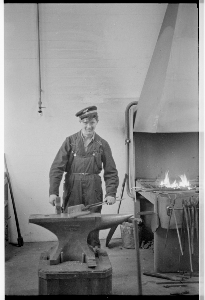 Ystads nya lokstation, uppförd av Statens Järnvägar, SJ 1946-1948. Arbete i smedjan.