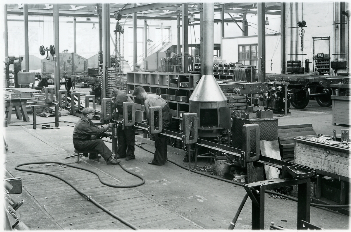 AB Gävle vagnverkstad AGV. Nitning av detaljer på golvramar.