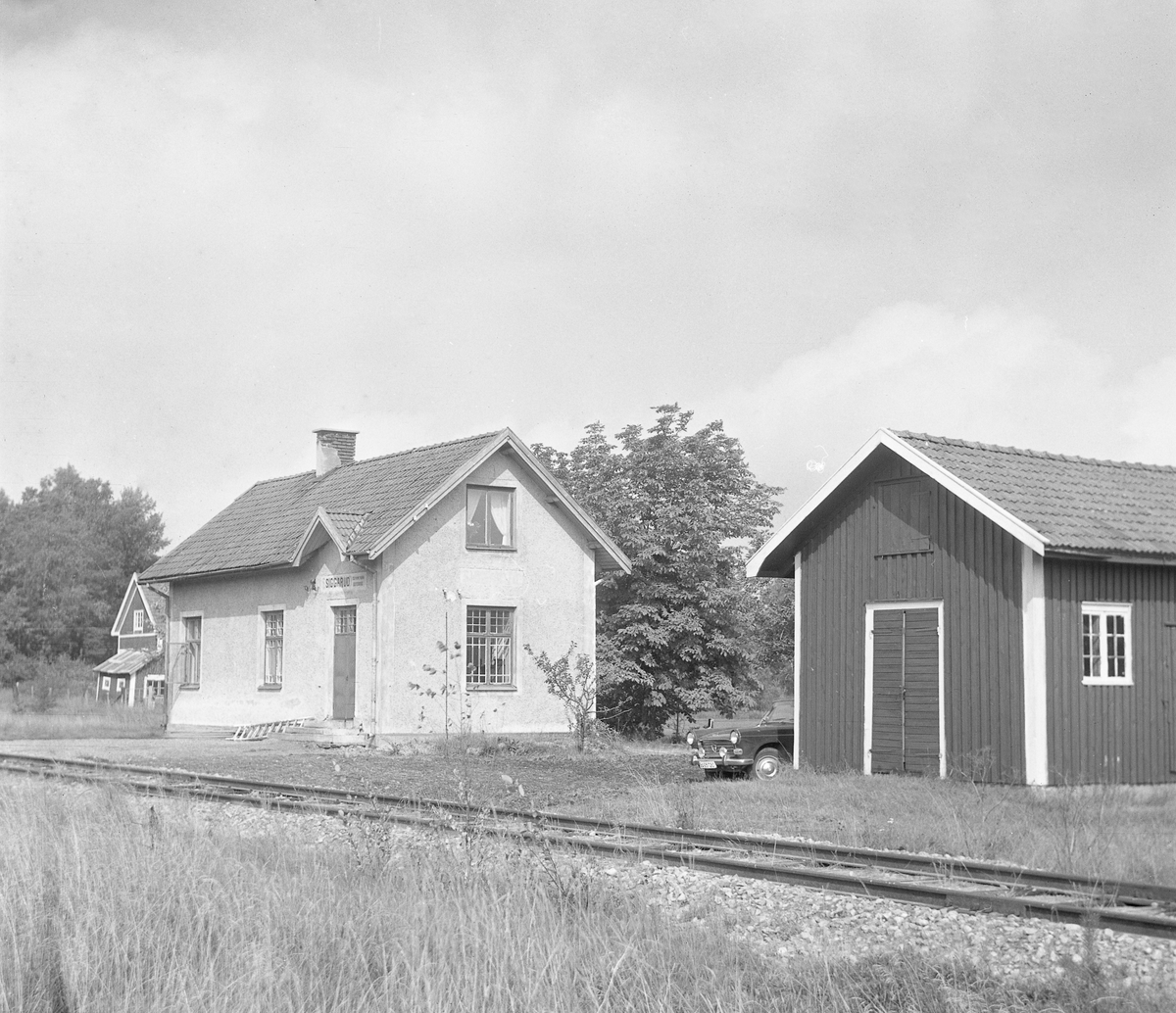 Hållplats anlagd 1917. Envånings reverterat stationshus.