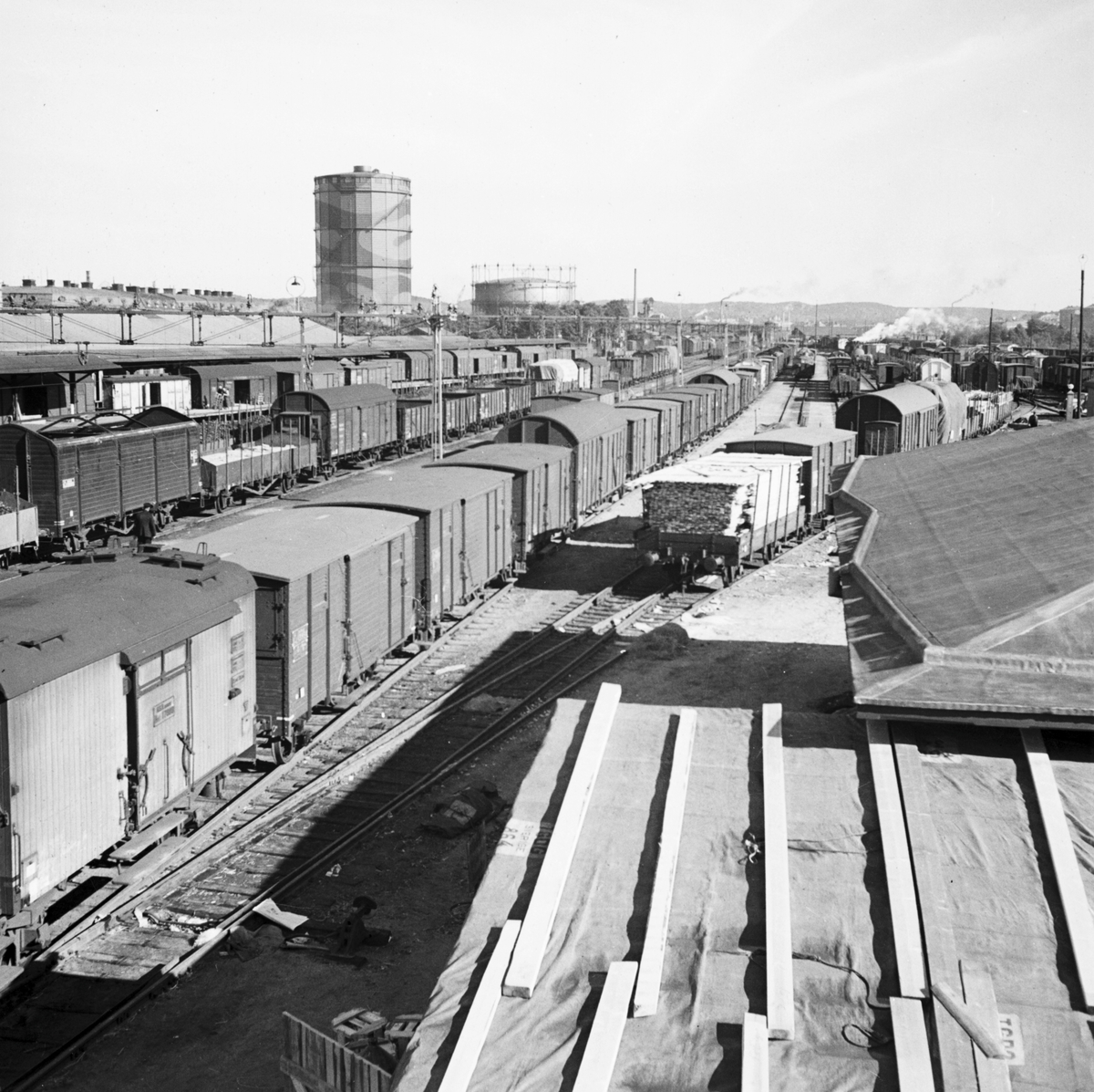 Titel: Godsvagnar på Bergslagsbanans bangård.