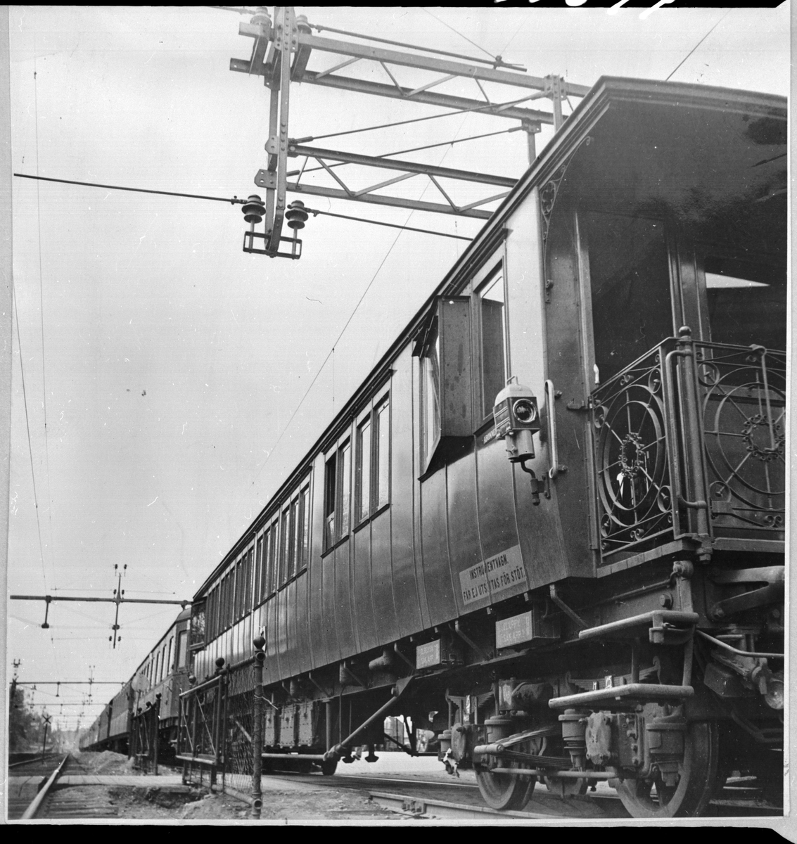Mätvagn SJ Bo7 2812. Halladevagnen. Fransmannen Emile Hallade, fader till Hallademetoden för mätning, utformning och fastställning av kurvor för järnvägsspår. Vagnen ursprungligen byggd som personvagn tidigt 1900-tal. och ombyggd till mätvagn 1930.
