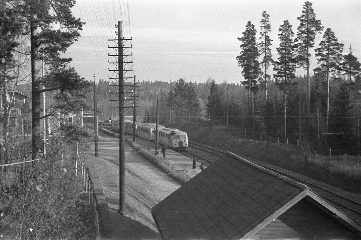 Blötberget järnvägsstation, med inkommande motorvagståg.