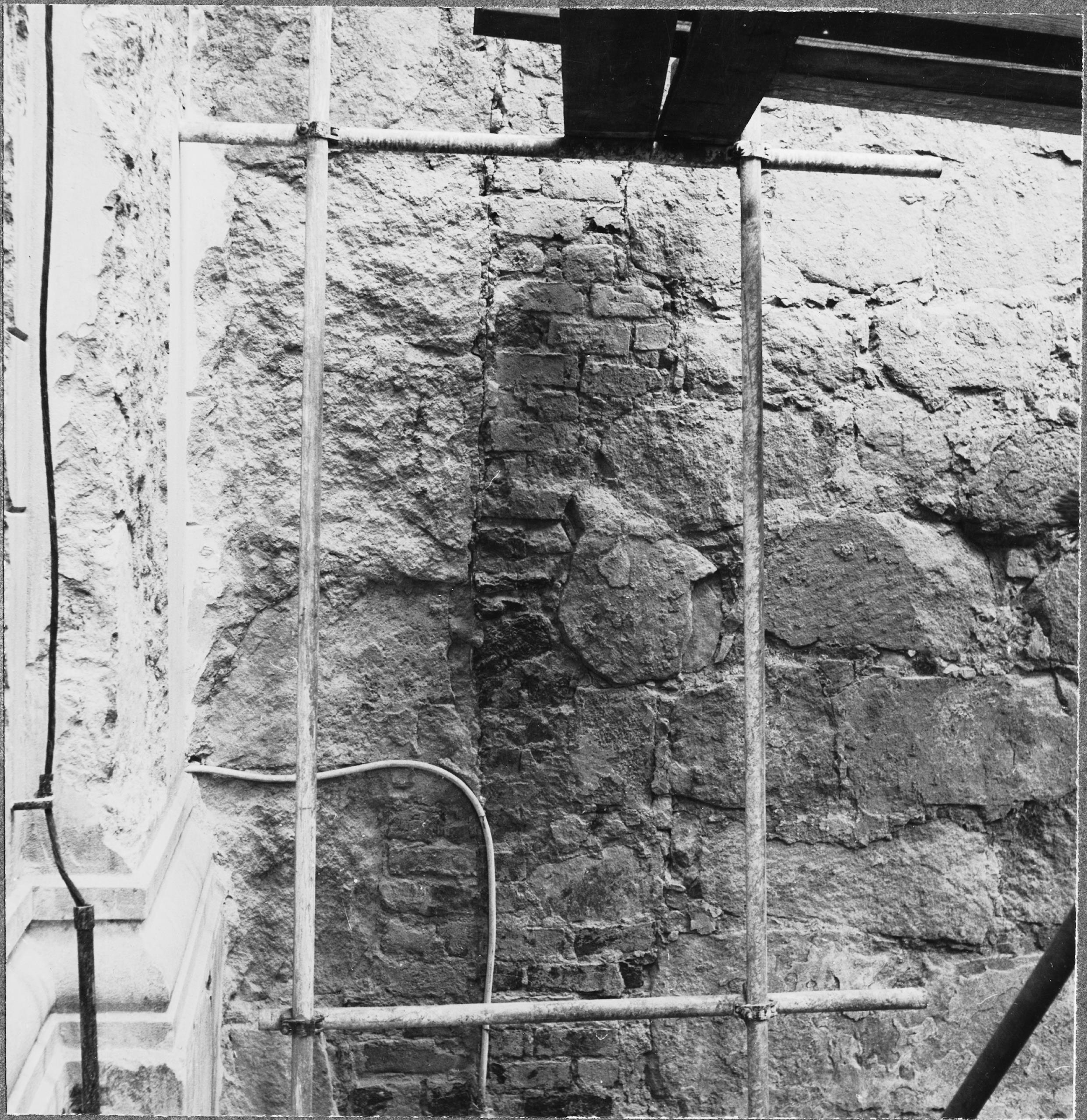 Kyrkan under ombyggnad. Gaveln mot väster, södra delen.