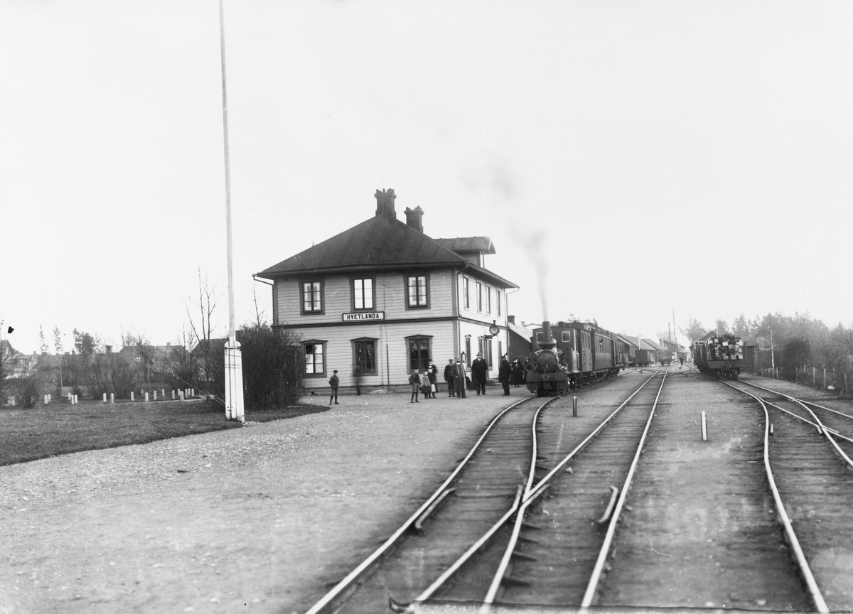 Tvåvånings putsat stationshus .Tvåvånings station i trä .