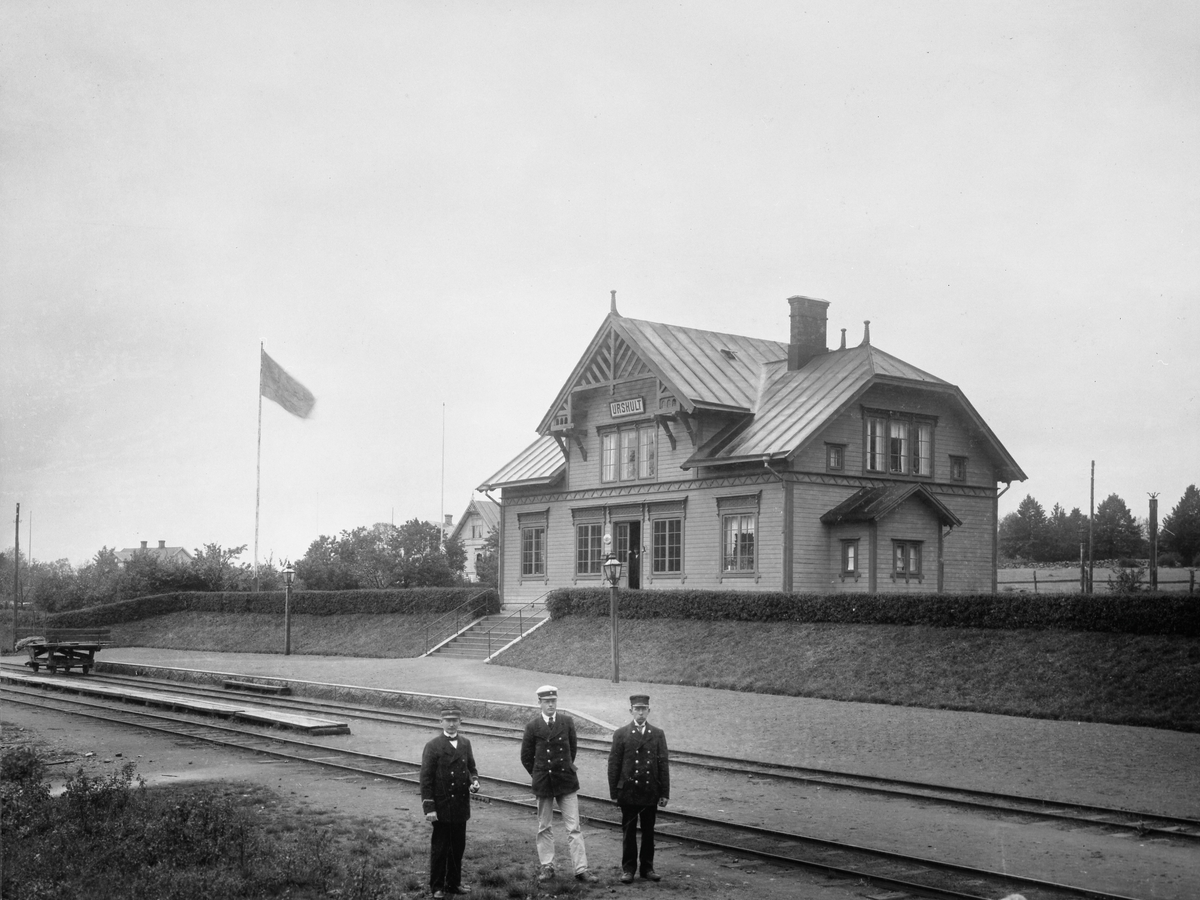 Titel: Stationsinspektor Axel Skoglund med övrig personal vid Urshult station.