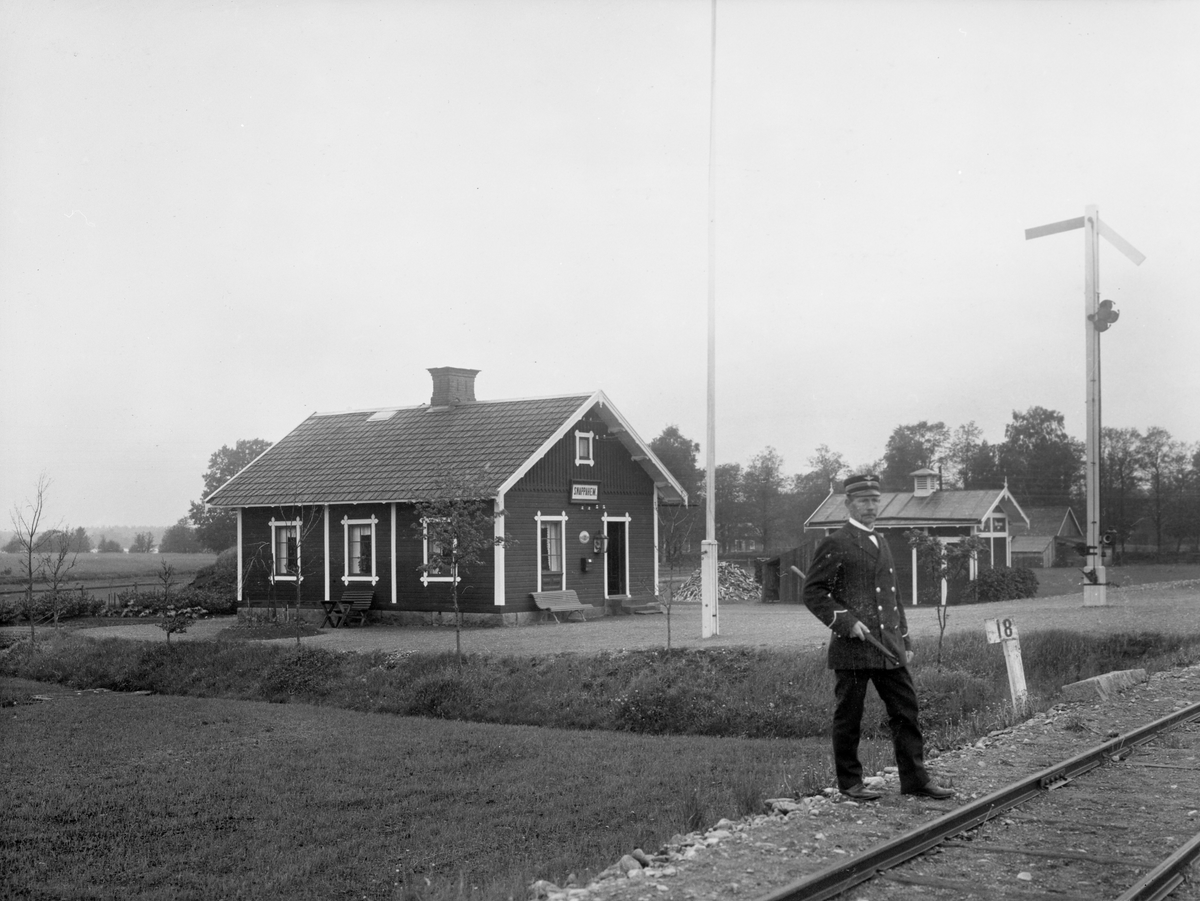 Stationsförman F. A. Dahl poserar vid stationen i Snappahem.