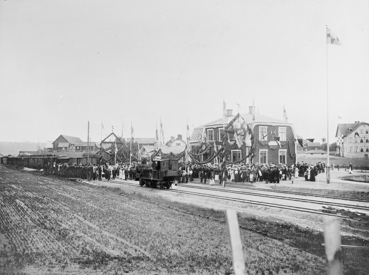 Virserum station. Växjö Åseda Hultsfreds Järnväg, VÅHJ lok 2 "S:t Sigfrid" ses i bildens mitt.
