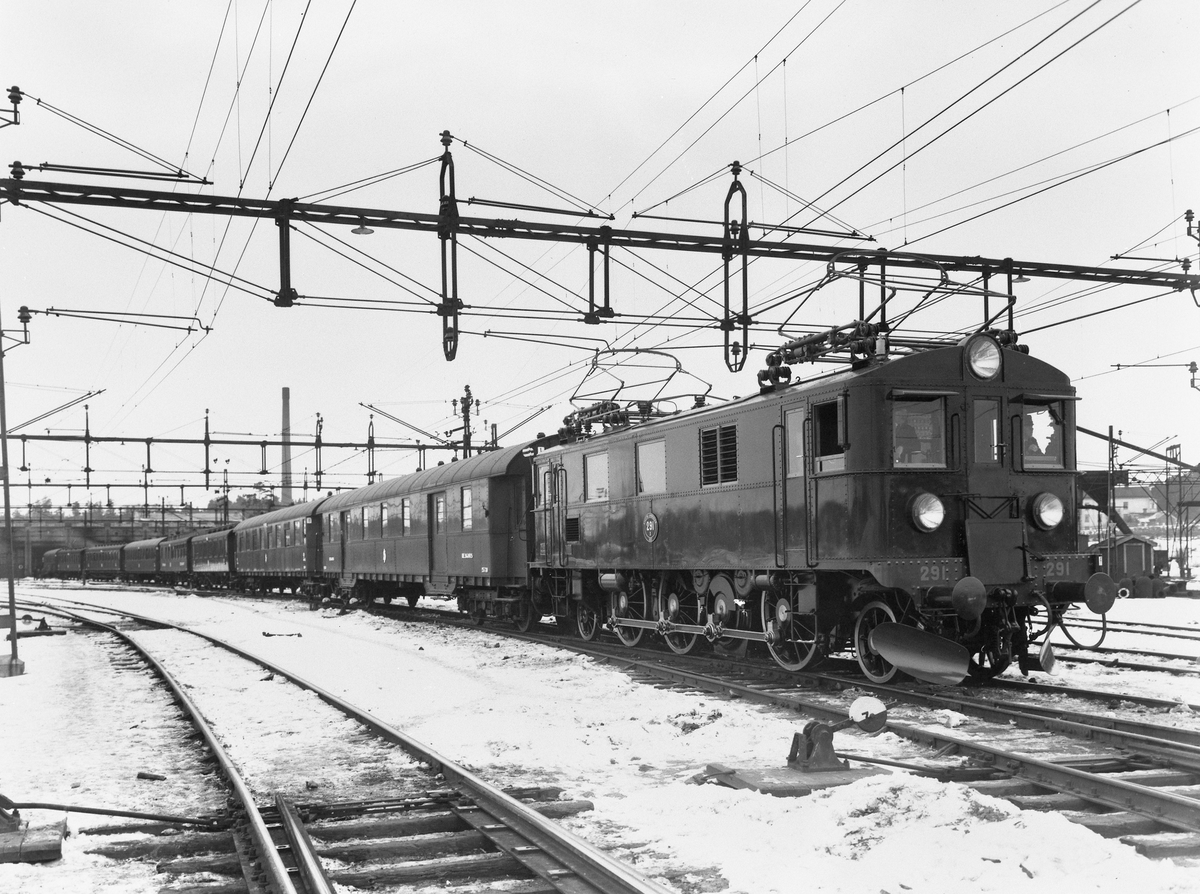 Statens Järnvägar, SJ D 291 med snälltåg i Hagalund.