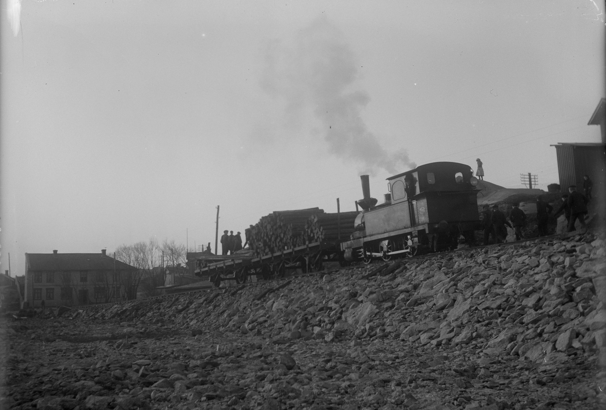 Titel: Järnvägsbygge. Loket Forsse (?)