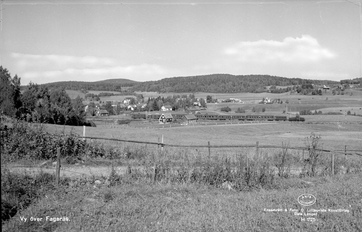 Statens Järnvägar, SJ Hg-lok med persontåg ringlar fram genom landskapet.