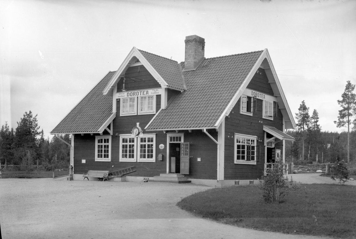 Station anlagd 1915. En- och enhalvvånings stationshus i trä. Expeditionslokalerna och väntsalen moderniserades 1947.