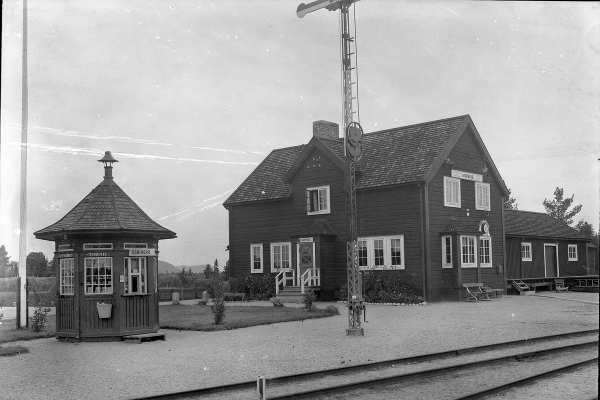 Station anlagd 1927. Tvåvånings träbyggnad, sammanbyggd i vinkel med godsmagasinet.
