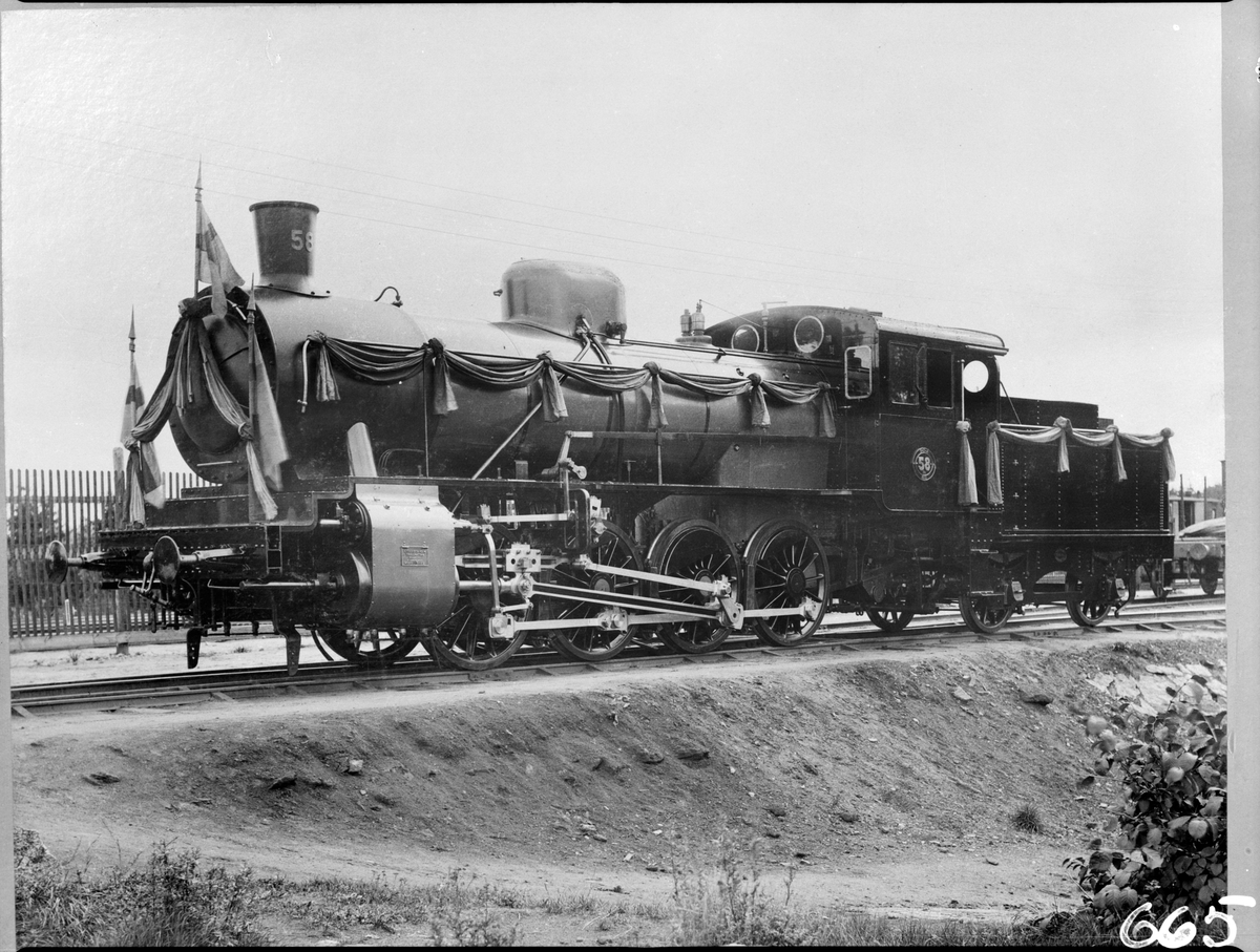 Gävle - Dala Järnväg, GDJ N3 58. Anledningen till flaggorna är att detta var NOHABS 1000:e levererade lok.