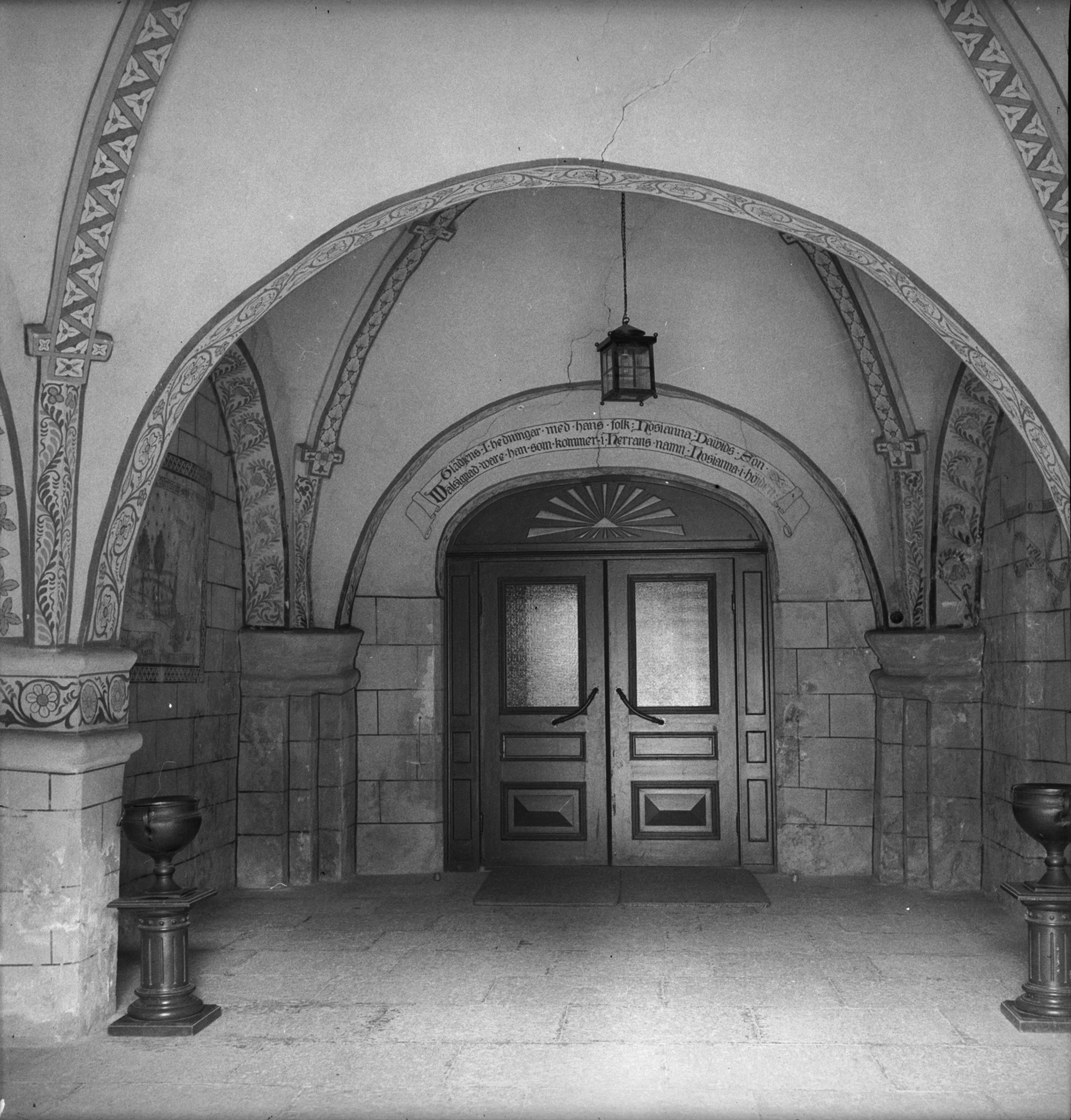 Dörrpar med tympanon i en elliptisk båge.