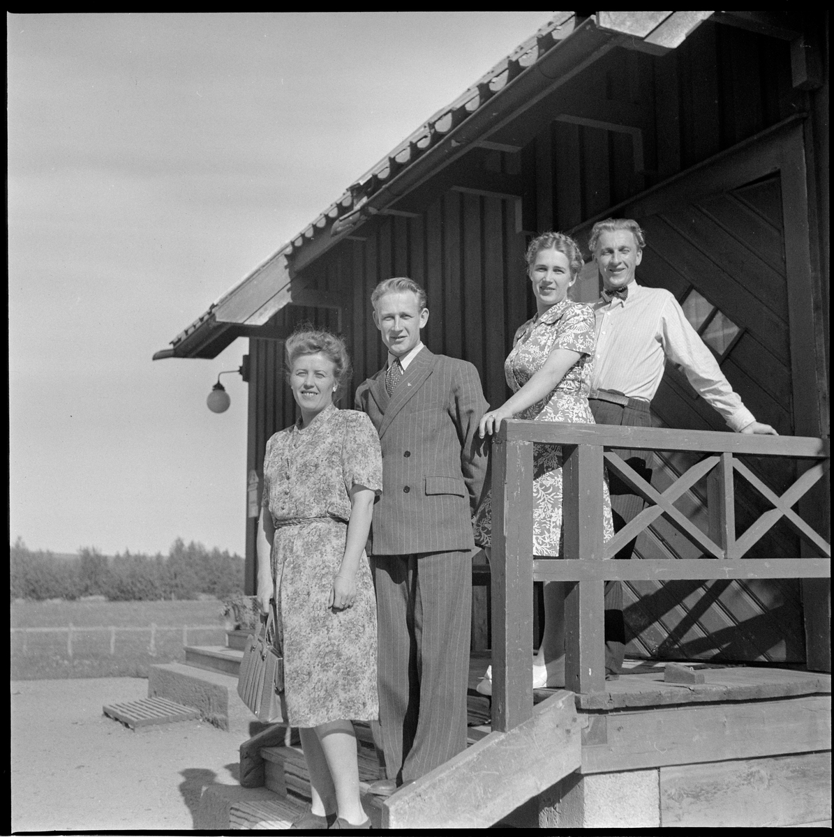 Okända personer fotograferade utanför ett stationhus vid bostadsingången.