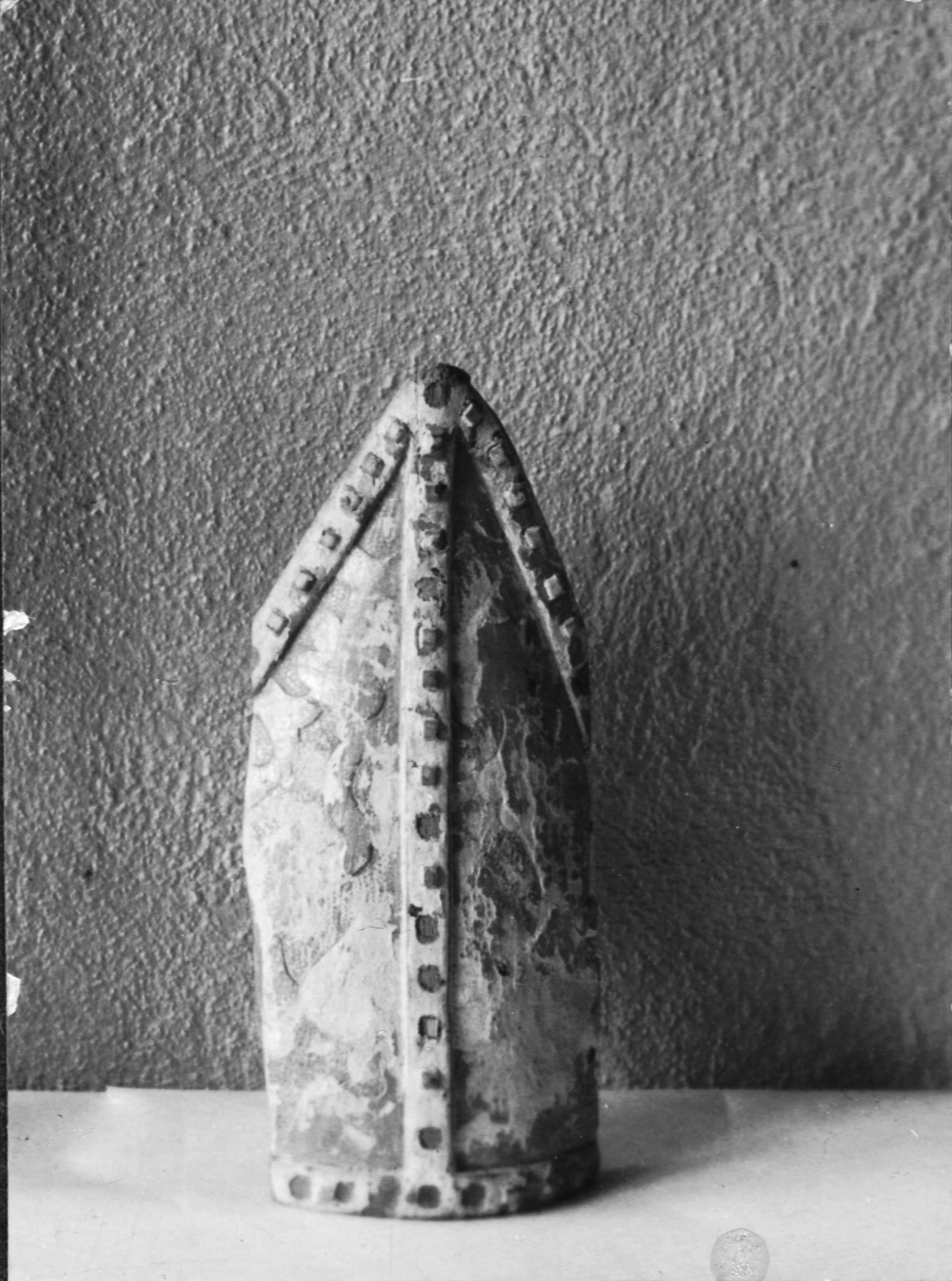 Biskopsmössa som tillhört någon skulptur, 1400-tal.