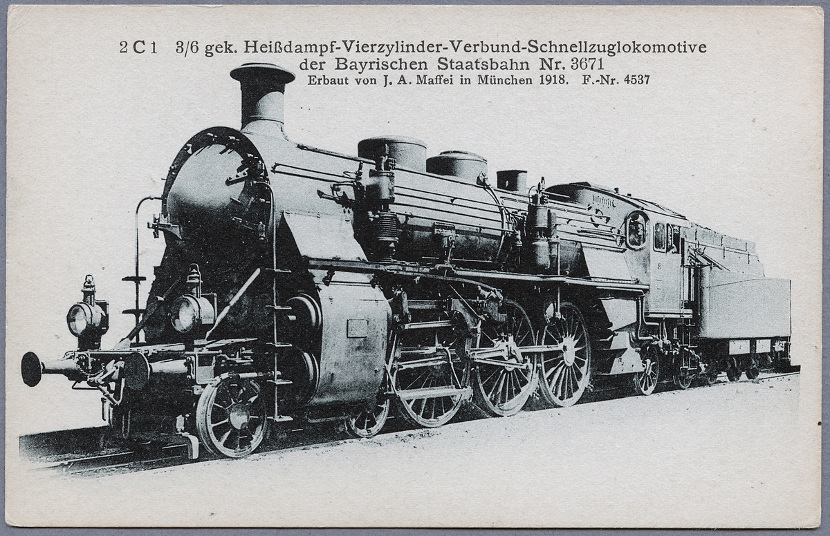 Tyskt ånglok, 2 C1 Bayrischen Staatsbahn lok 3671. Tillverkat 1918 av J.A. Maffei i München.