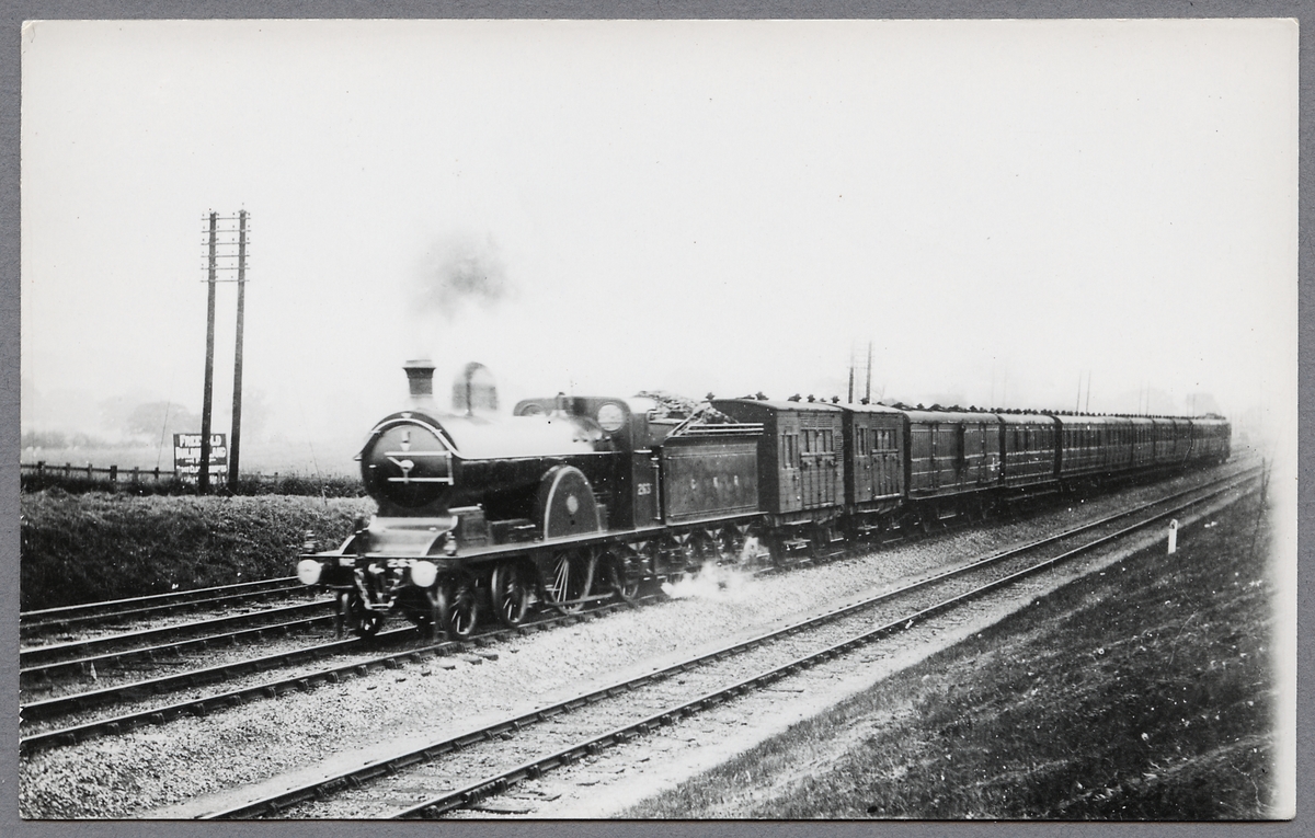 Ånglok Great Western Railway, GWR lok 263 med personvagn.