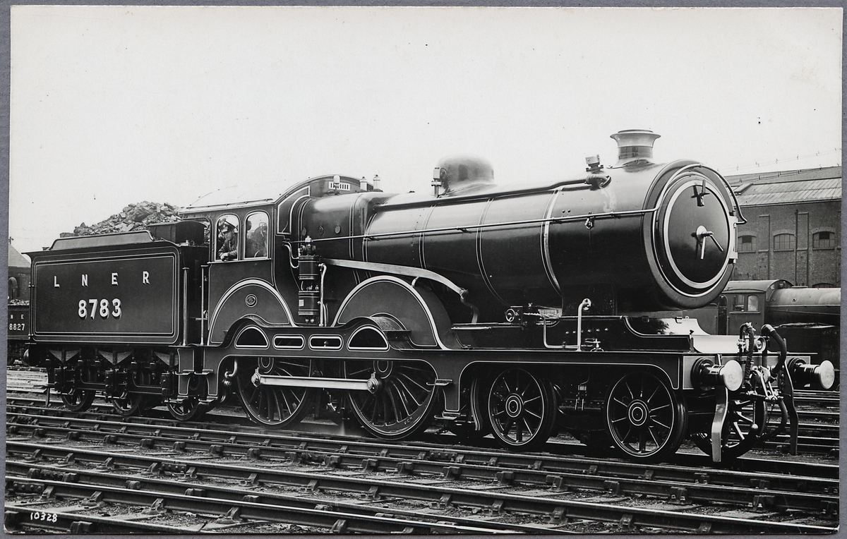 Ånglok på bangård, London North Eastern Railaway, L.N.E.R. lok 8783.
