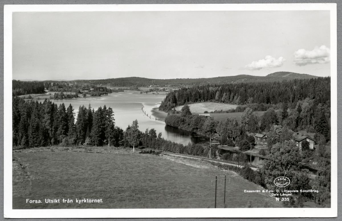 Titel: Utsikt över Forsa med järnvägen på nedersidan av sjön.