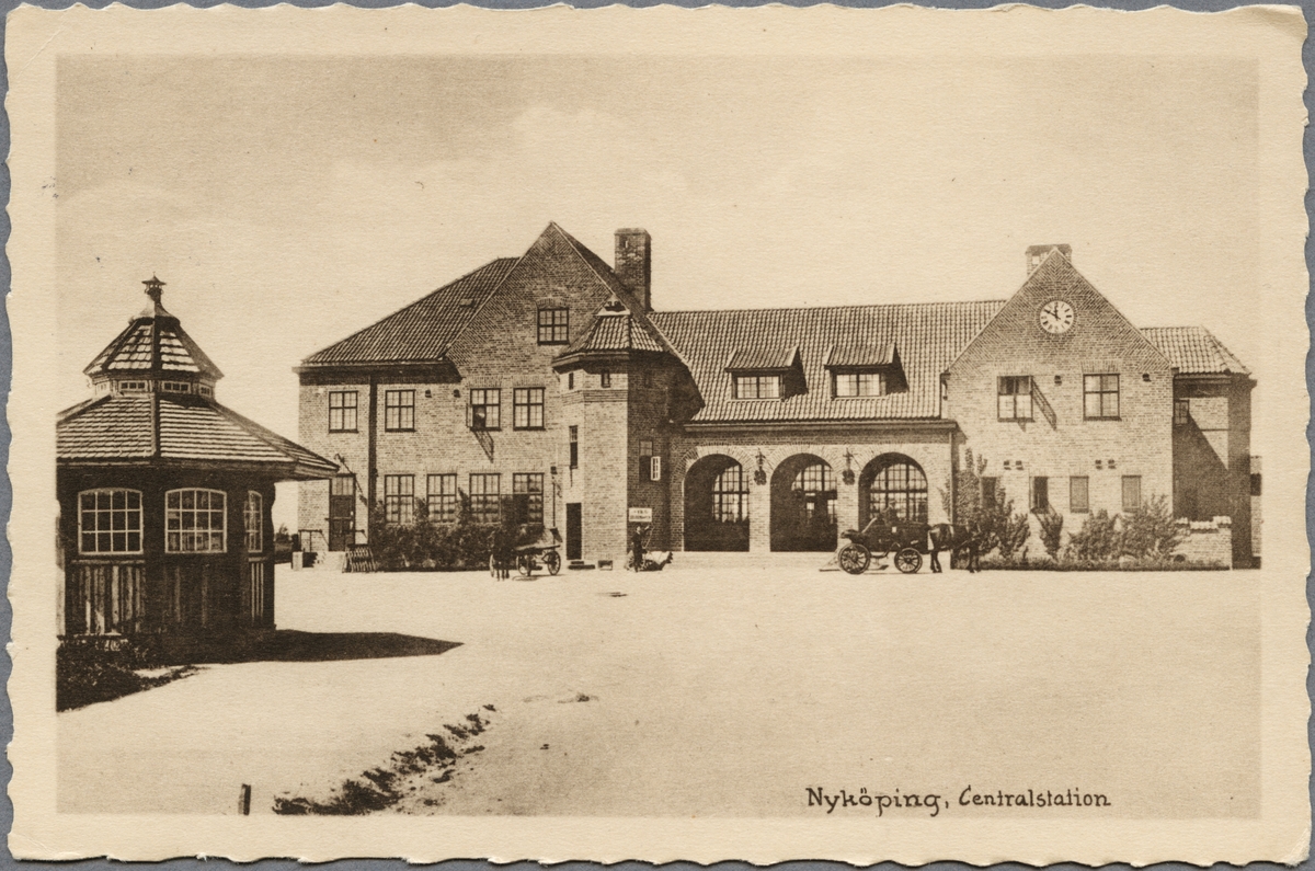 Titel: Gårdsfasaden vid Nyköping centralstation. Kiosken är den tidigaste vid stationen.