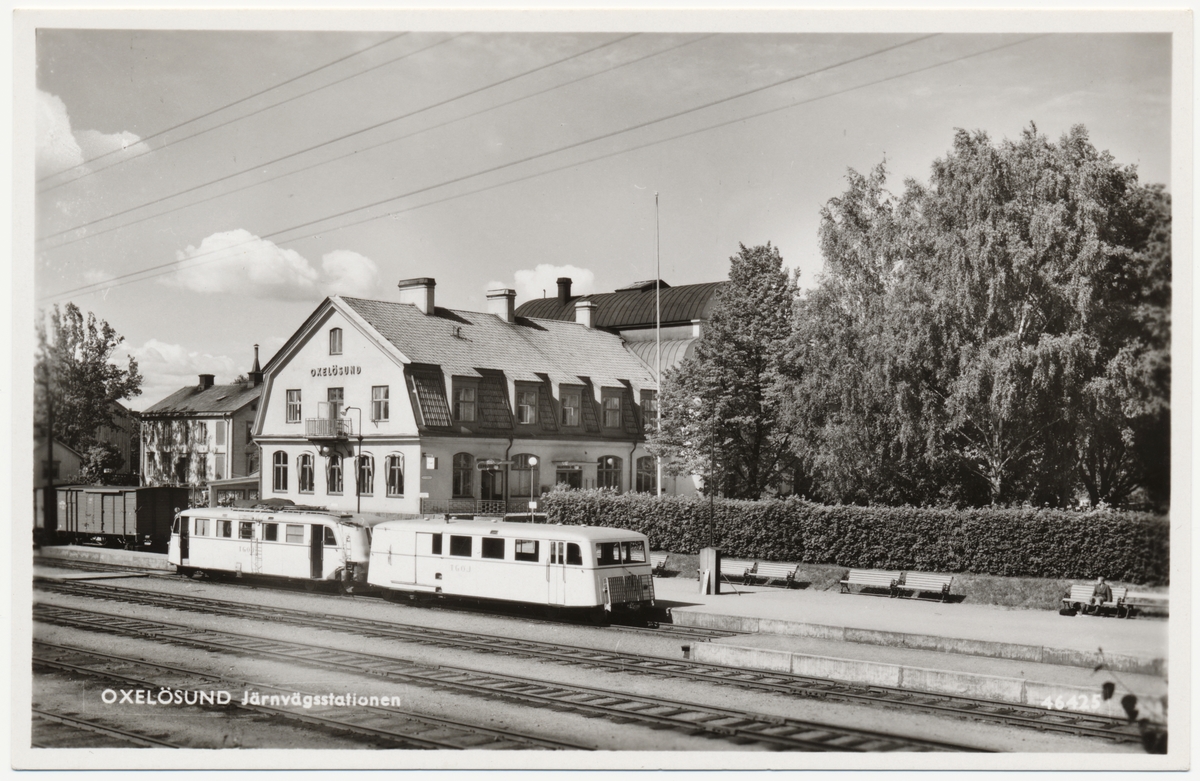 Oxelösunds Järnvägsstation med Trafikaktiebolaget, Grängesberg - Oxelösunds Järnväg, TGOJ motorvagnståg.