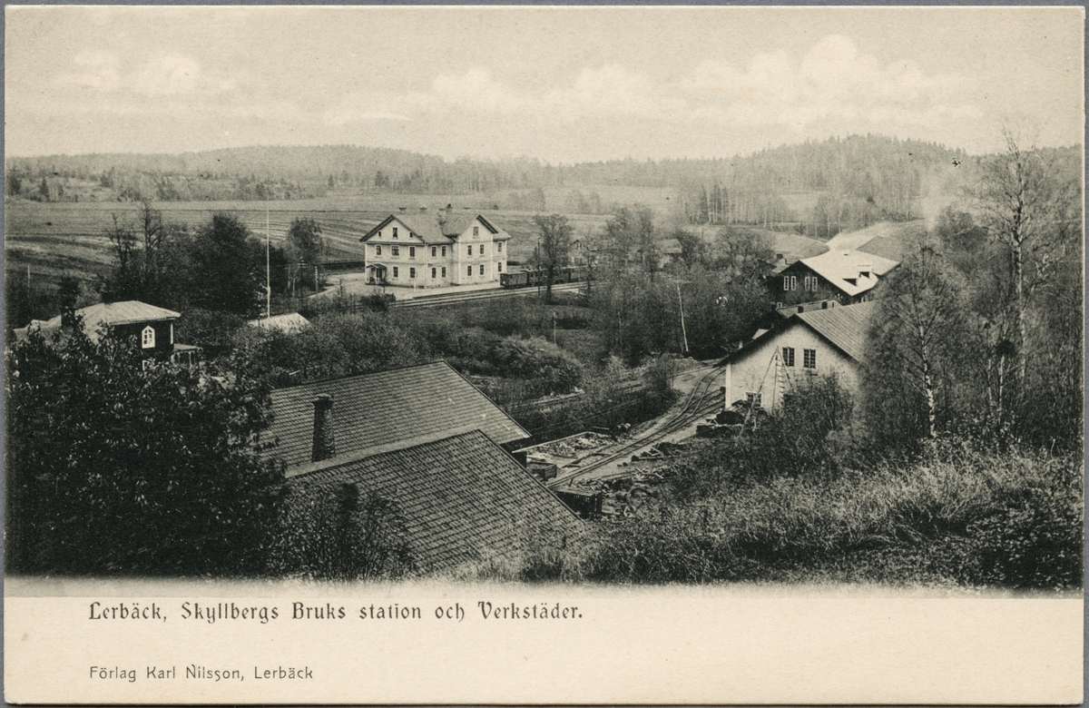 Skyllbergs Bruks Station och Verkstäder i Lerbäck. Hallsberg - Motala - Mjölby Järnväg, HMMJ.